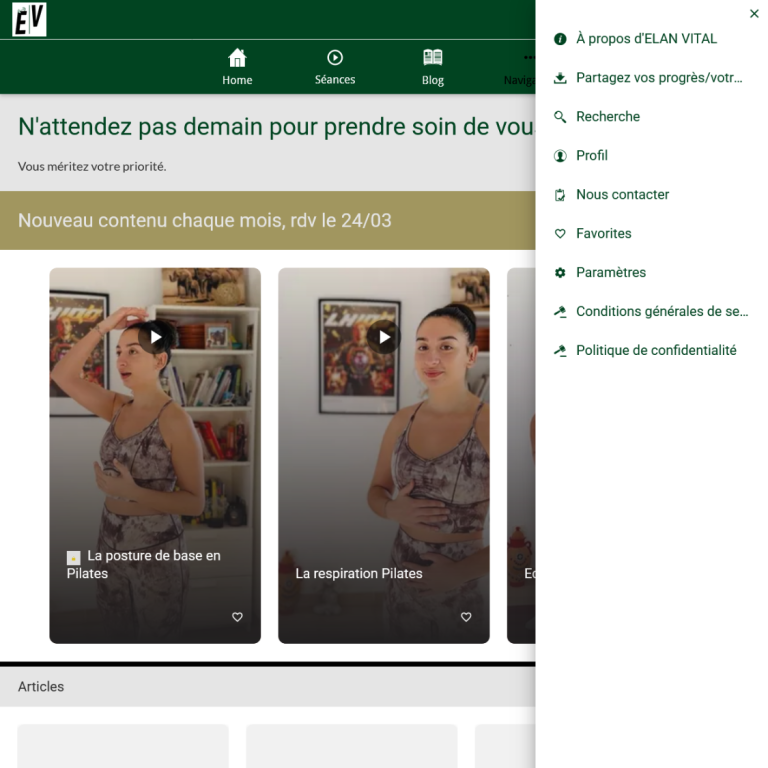 Élan Vital est l’application dédiée à toutes celles et ceux qui veulent retrouver énergie, mobilité et confiance dans leur corps de manière adaptée à leur santé et à leur condition physique.